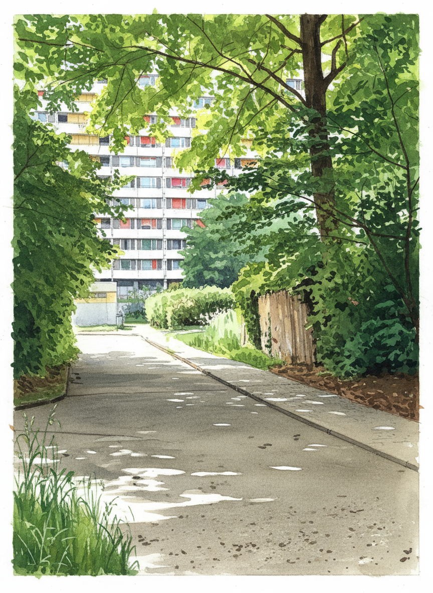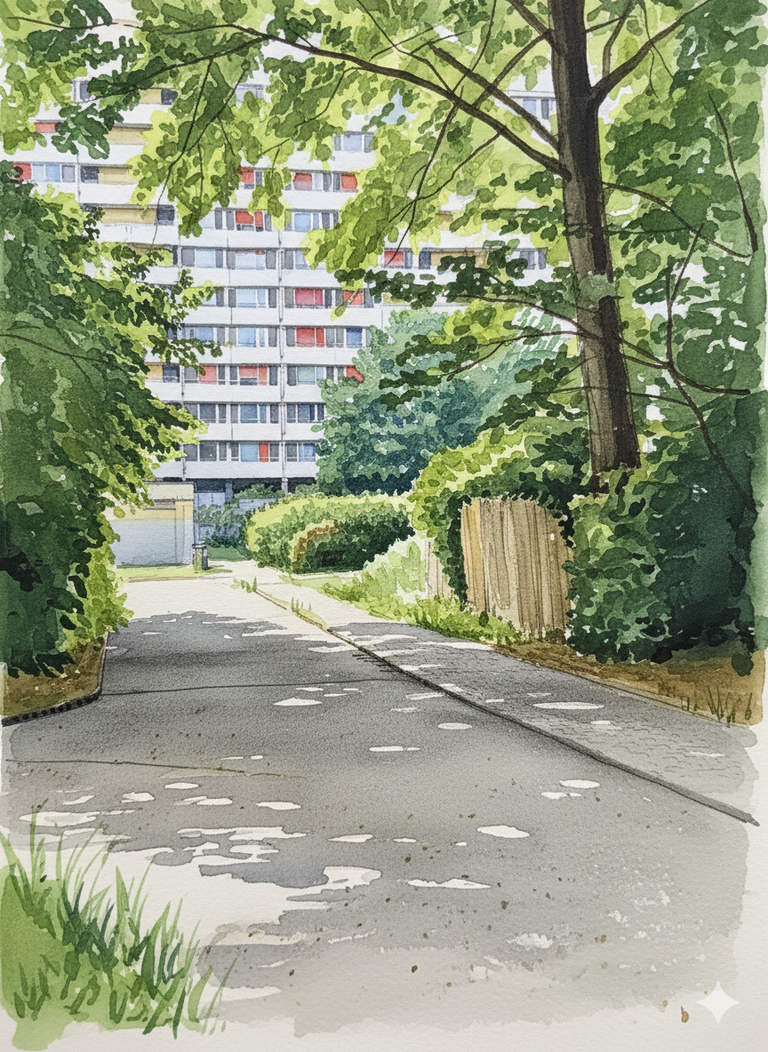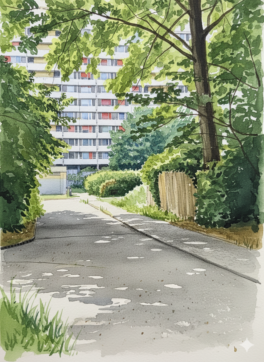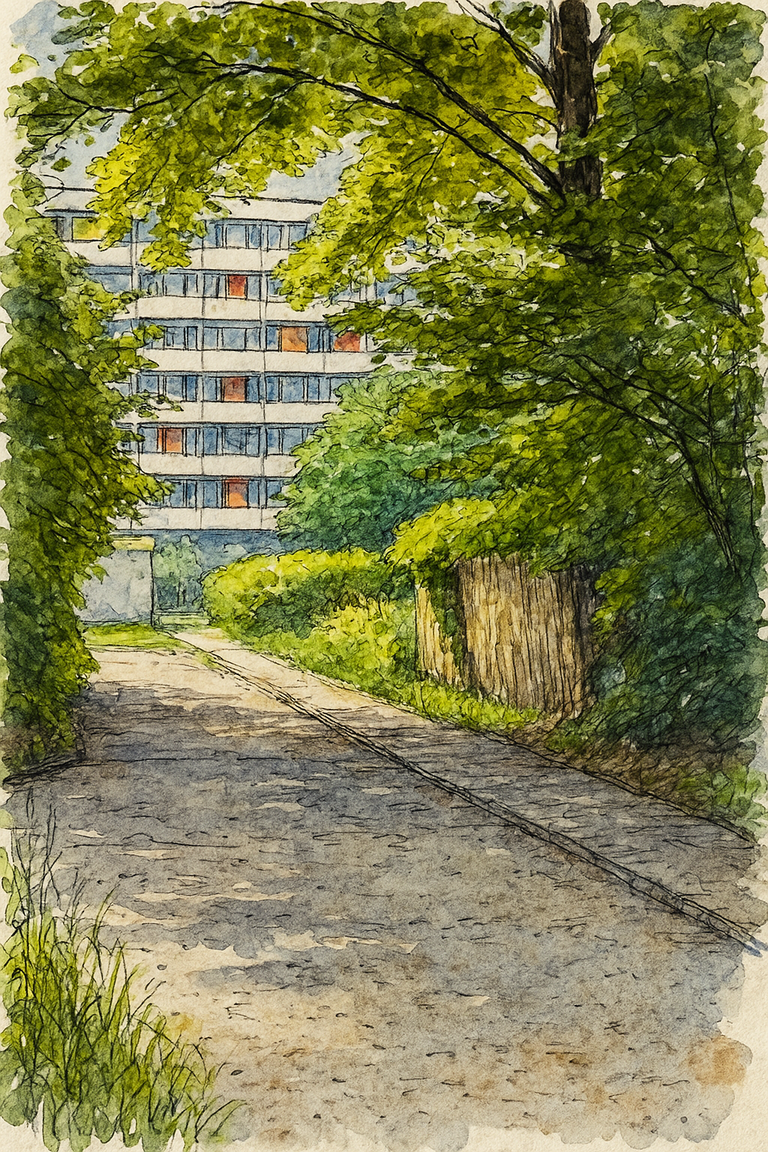 Das Zeichnen ist hier etwas resilienter. Nicht das irgendwie schwierig wäre, eine KI zum Urban Sketching zu bringen. Der Prompt könnte im Gegenteil kaum einfacher sein: 'Mach aus diesem Foto eine Zeichnung, Tusche und Aquarell, Urban Sketching'. Man erhält eine plausible Zeichnung, die - unter fremdem Namen hochgeladen - wohl kaum Irritation oder Zweifel auslösen würde. Aber alles was das Zeichnen für mich wesentlich macht, würde fehlen.